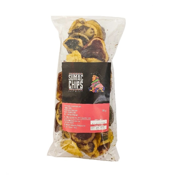 - Snacks de papas nativas en presentación de 100gr de la marca SUMAC CHIPS de Cuzco destaca por su calidad, sabor y origen peruano. Un producto natural ideal para complementar una dieta saludable y equilibrada.